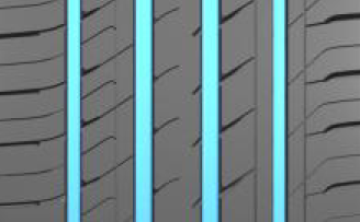 细沟槽搭配横向连贯的横向沟槽,有效切破水膜,提升湿地性能;独特的胎面配方设计保证优异的干湿地操控性能。